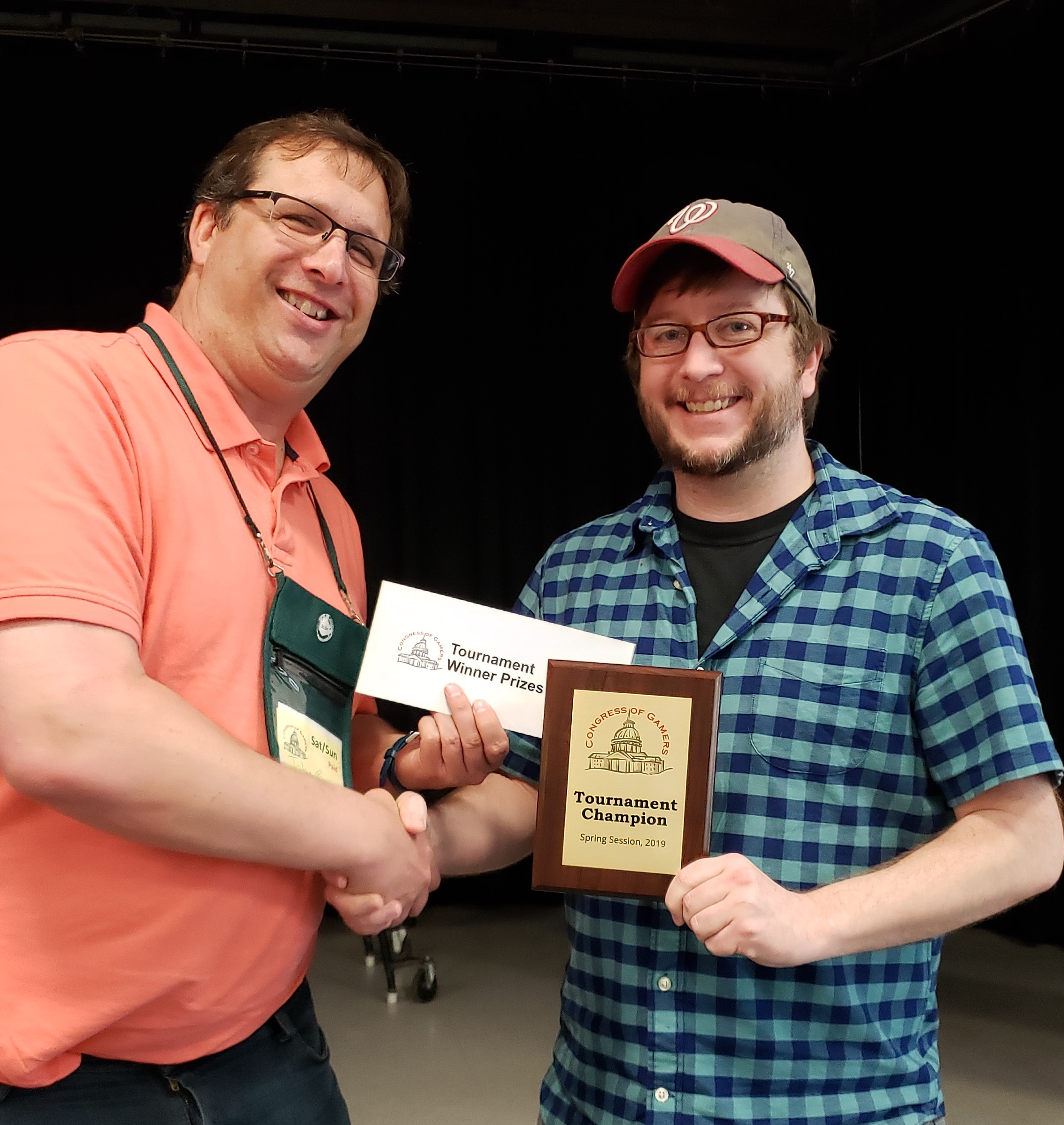Chris Wildes was invincible in a string of seven consecutive wins. His only loss of the weekend was the last game on Sunday, a 3-player Splendor game in which he went first. When the convention director asked what happened, he replied that "Splendor players have gotten a lot better."