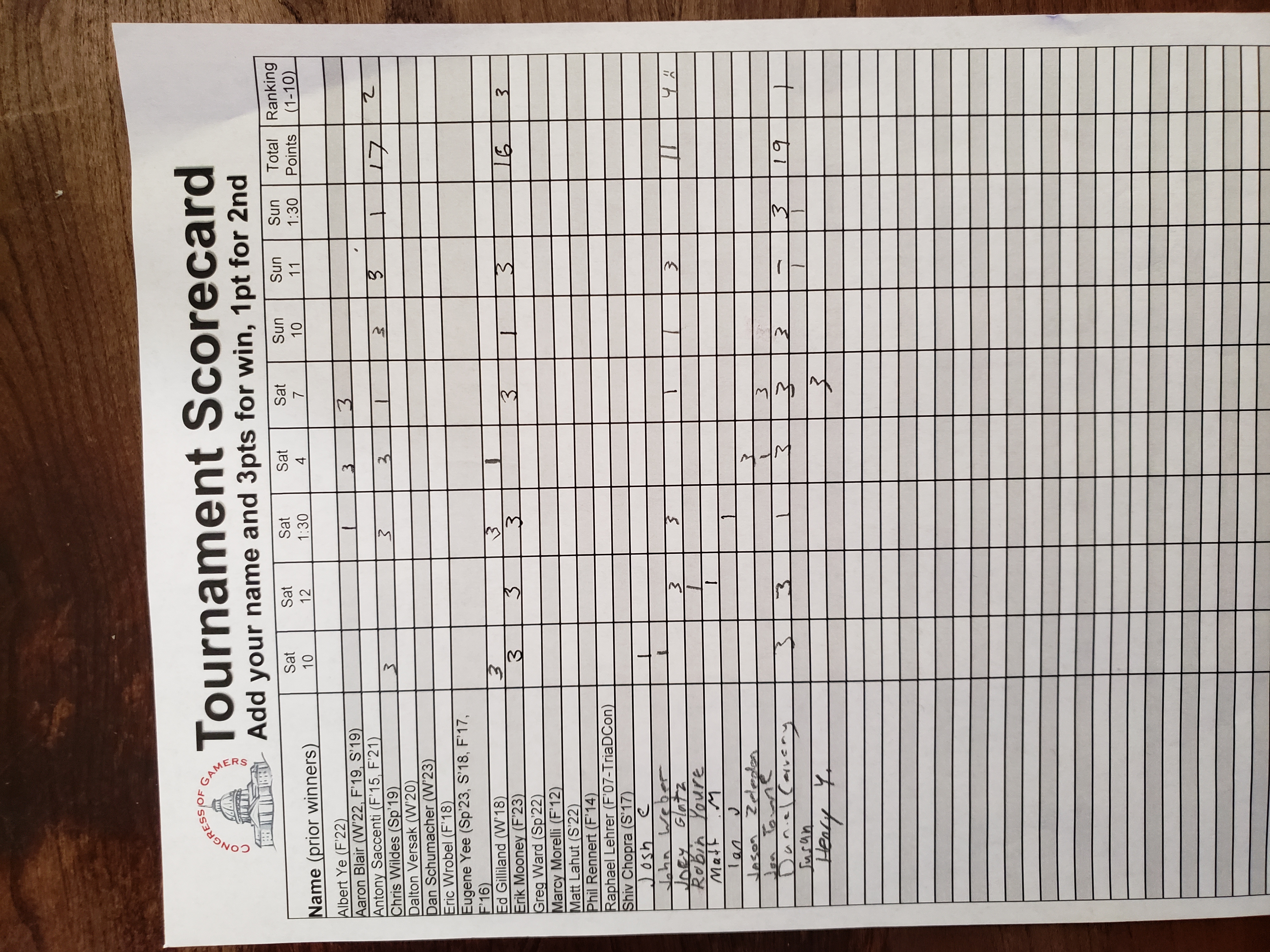 We'll have results as soon as the new Tourney Director, Mark Paulette, provides them. For now: