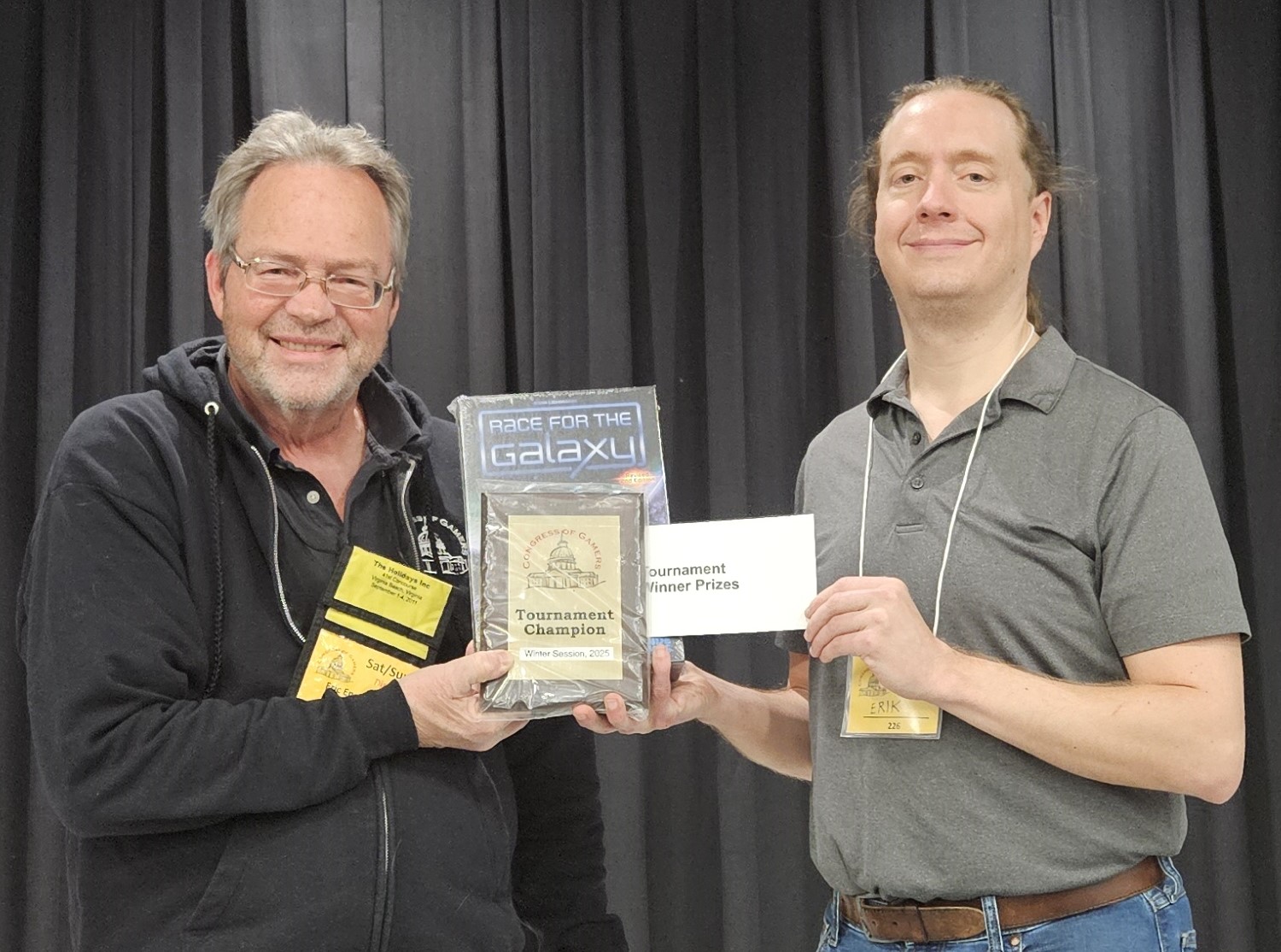 Erik Mooney! Congratulations, Erik! This photo shows Erik (right) receiving his prizes from the convention director Eric Engelmann.